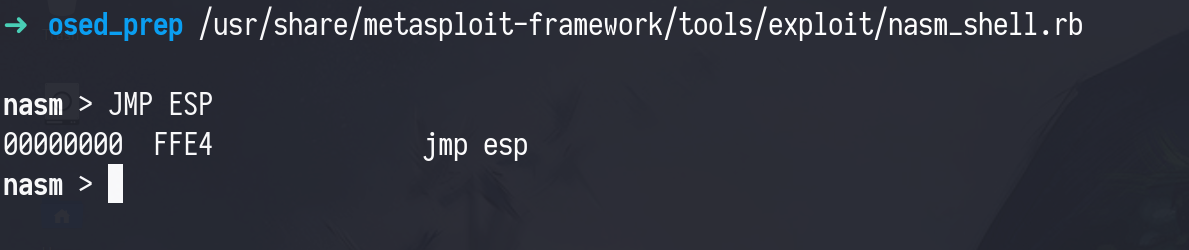 For pointing EIP to our shellcode’s location, we have to use a method called jump + reg. And our shellcode is overflowing on the stack, so we can use jmp esp instruction.