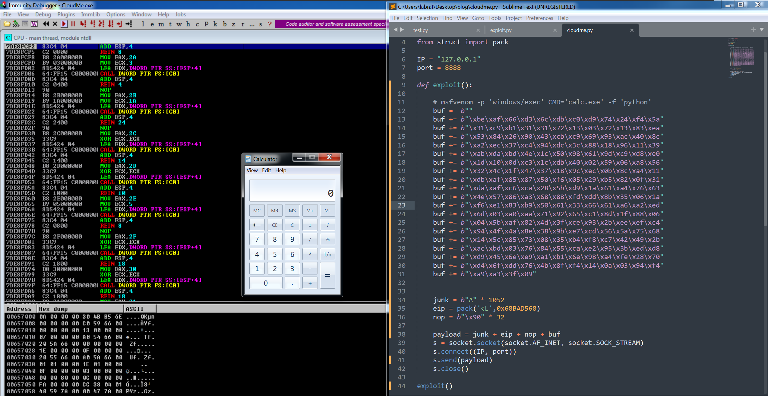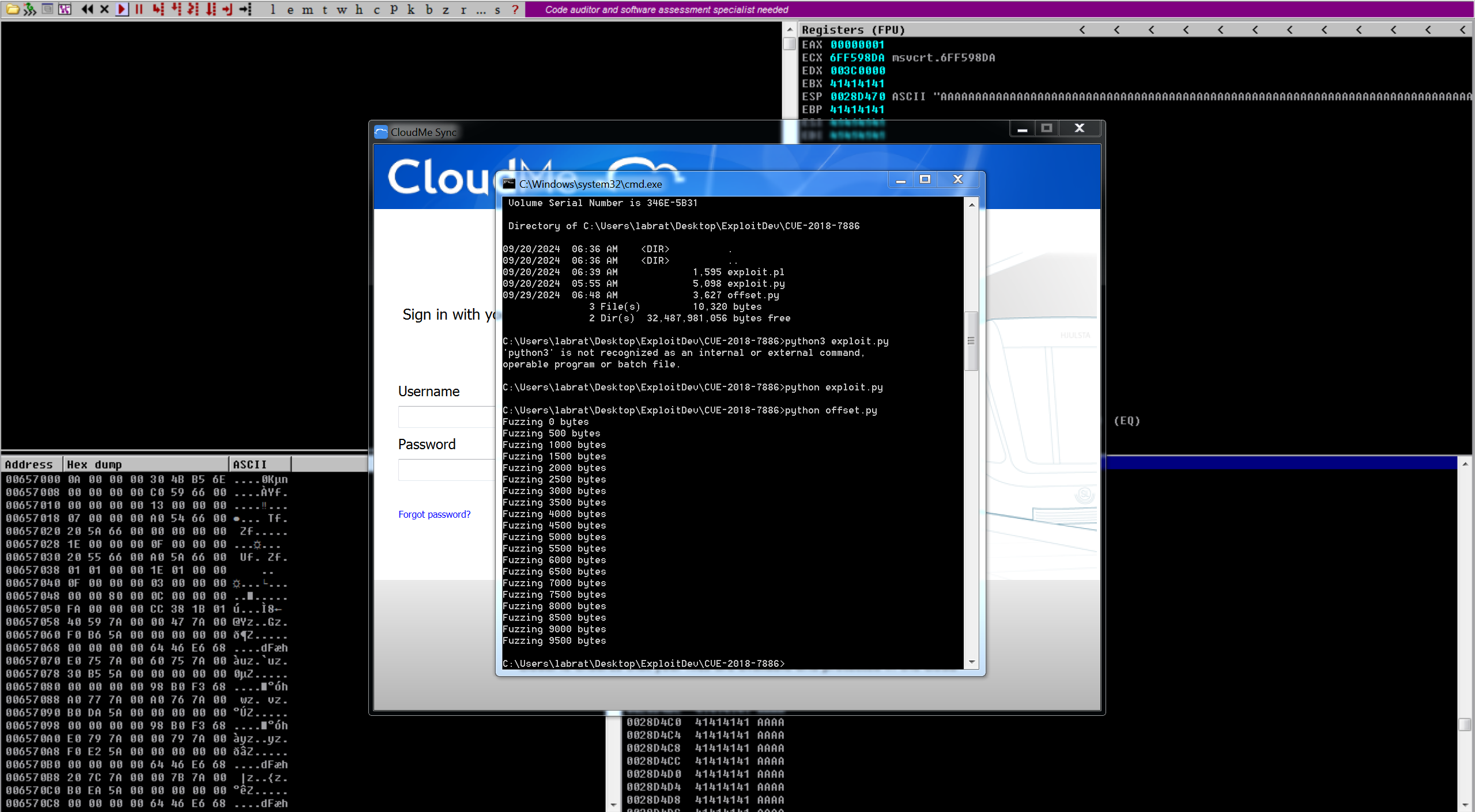 For the first of this series, we gonna use CloudMe Sync 1.11.0 application to develop our exploit. This application is vulnerable to Remote Buffer Overflow on port 8888.