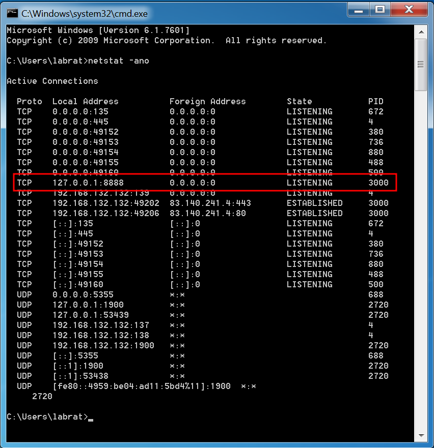 When we open the app, it will running on port 8888 in the background. We can check with netstat -ano command.