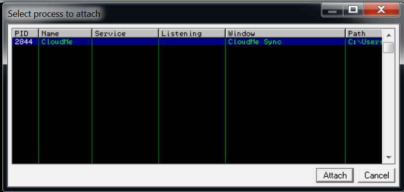 Before we get started, we need to attach our app with immunity debugger, so we can see how the application is working in the background and all the instruction. Run cloudme application first, and in immunity debugger, click on File > Attach.